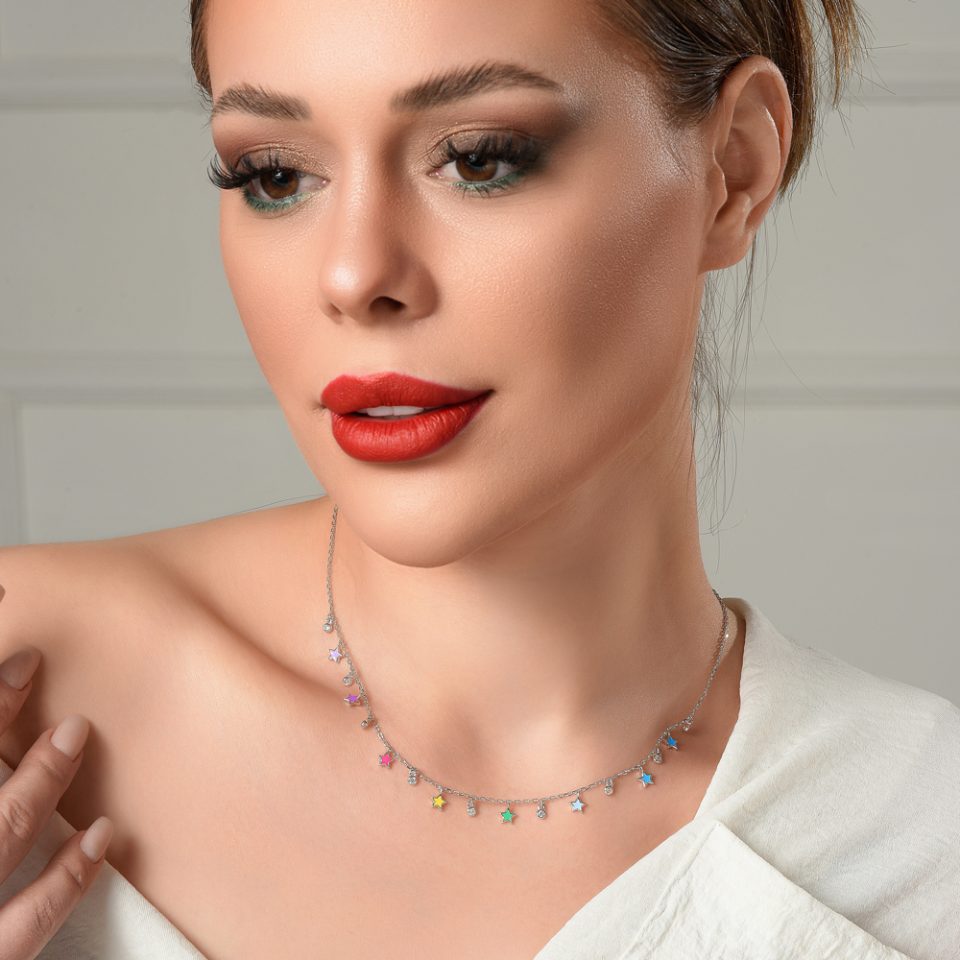 An oval necklace with sparkling ruby lobes and zirconium for a charming and attractive look Silver 925