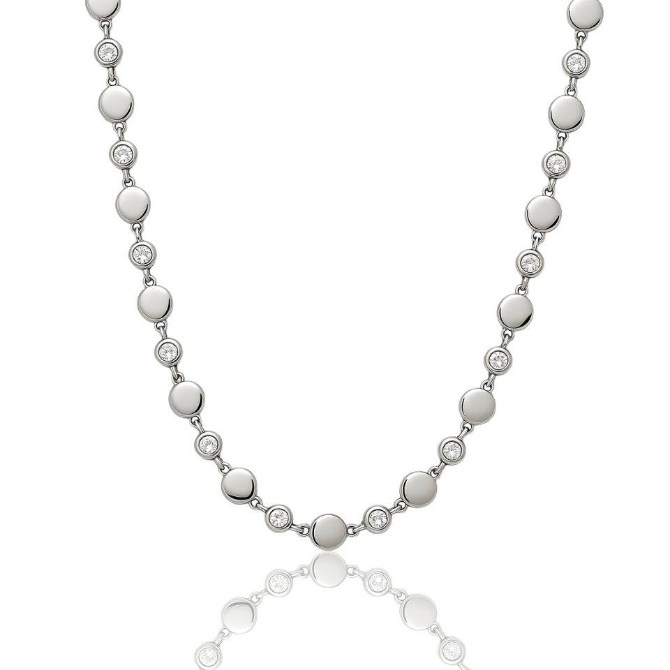 A necklace of polished, inlaid circles made of 925 sterling silver.