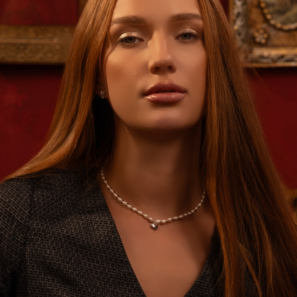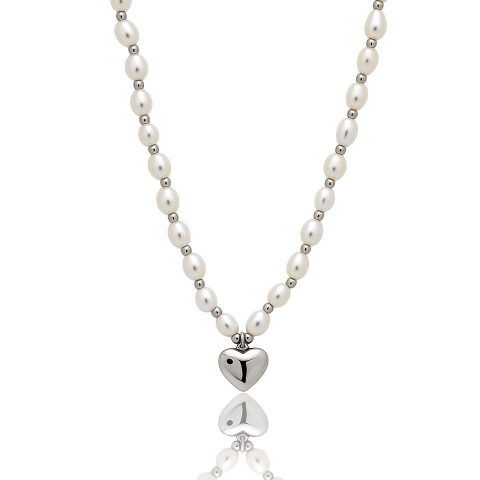 A necklace of naturally pearls and a polished heart pendant in 925 sterling silver.