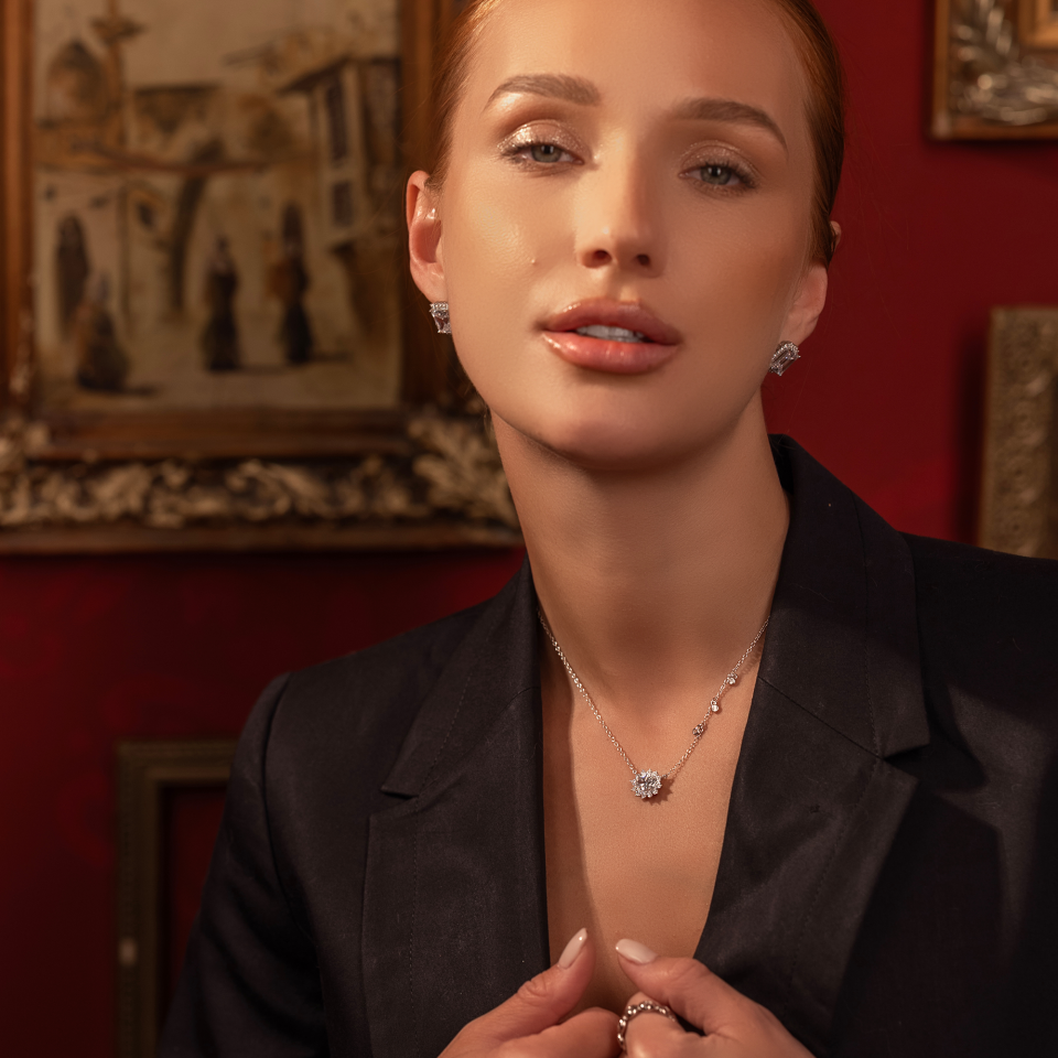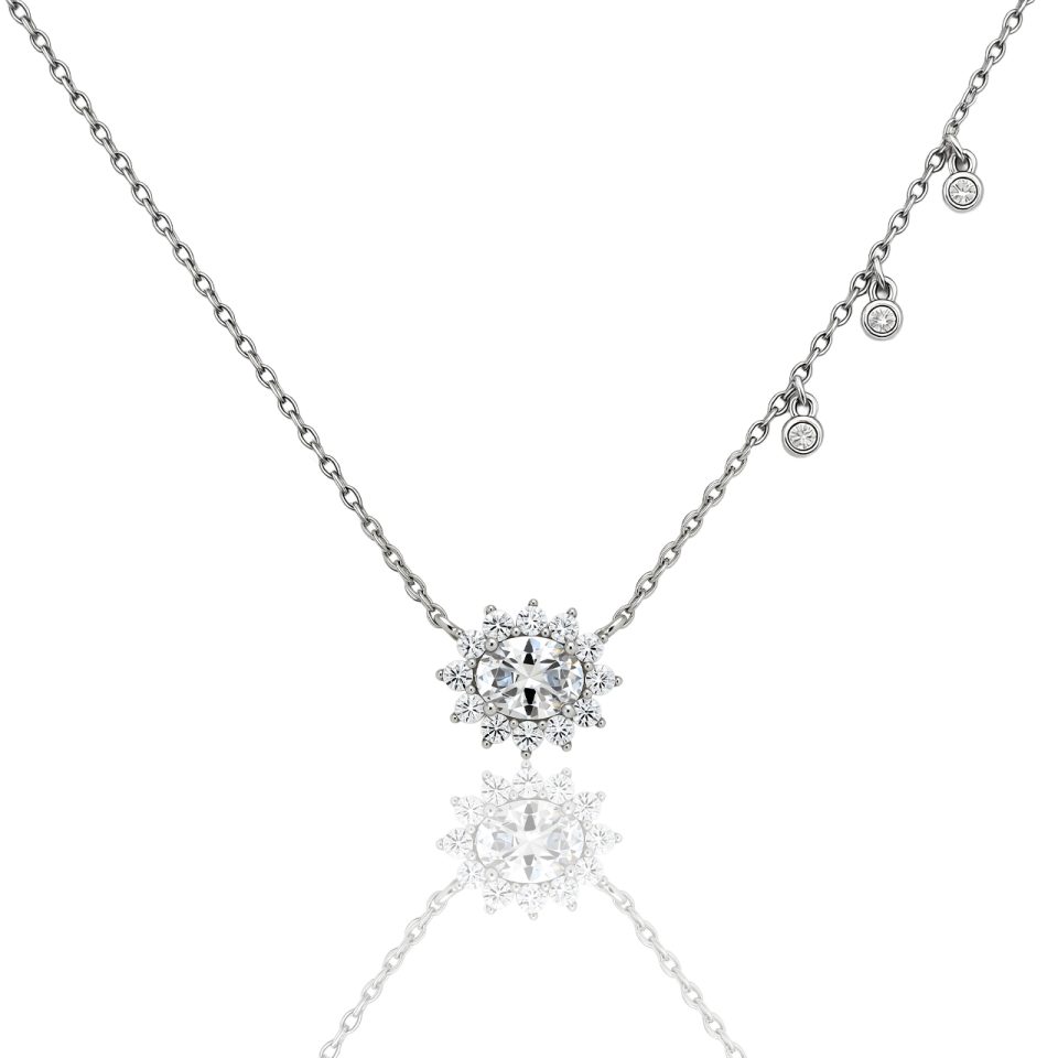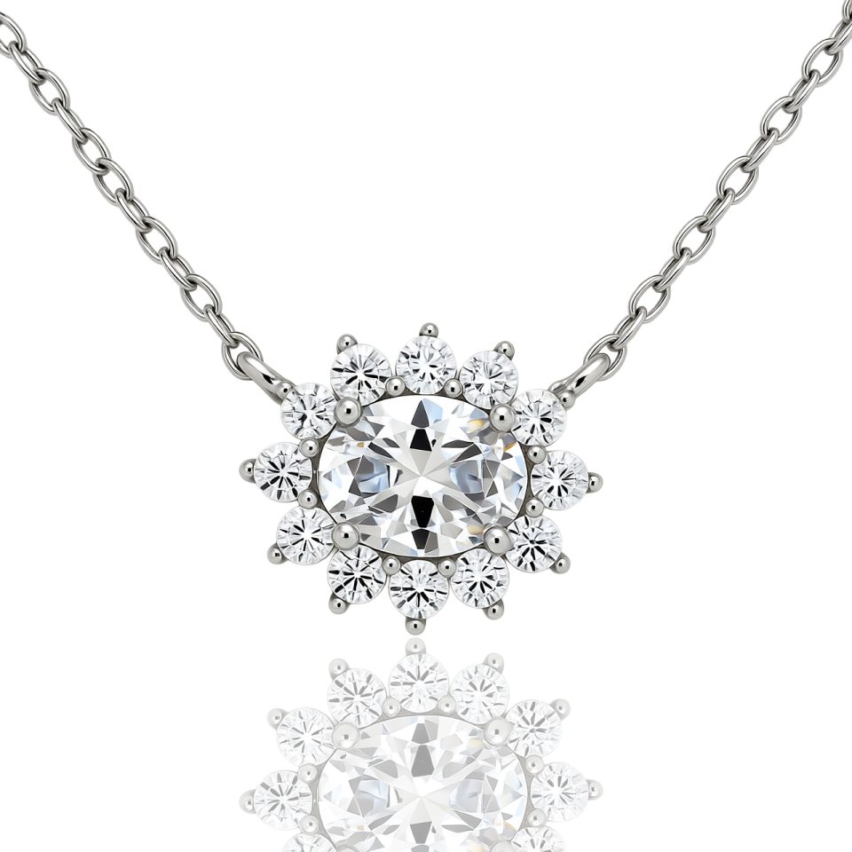 Sun pendant necklace in 925 sterling silver with a halo design and side charms