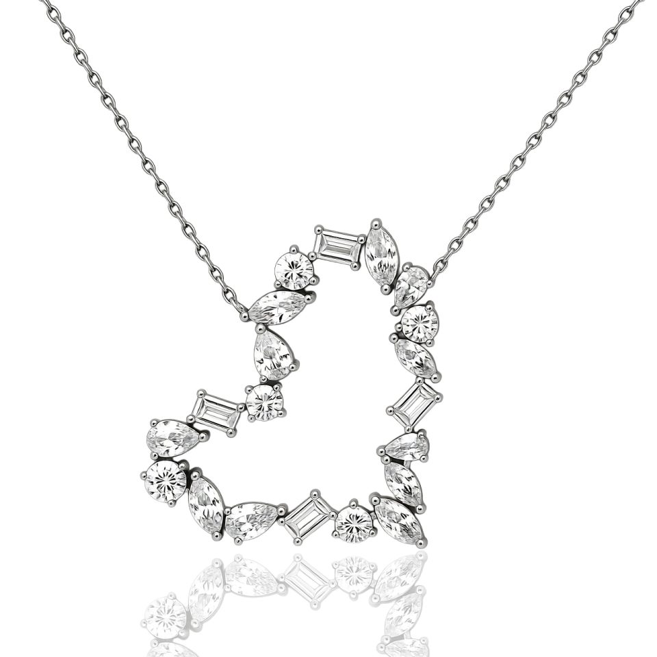 Open heart necklace with multi-piece zircon stones, made of 925 sterling silver