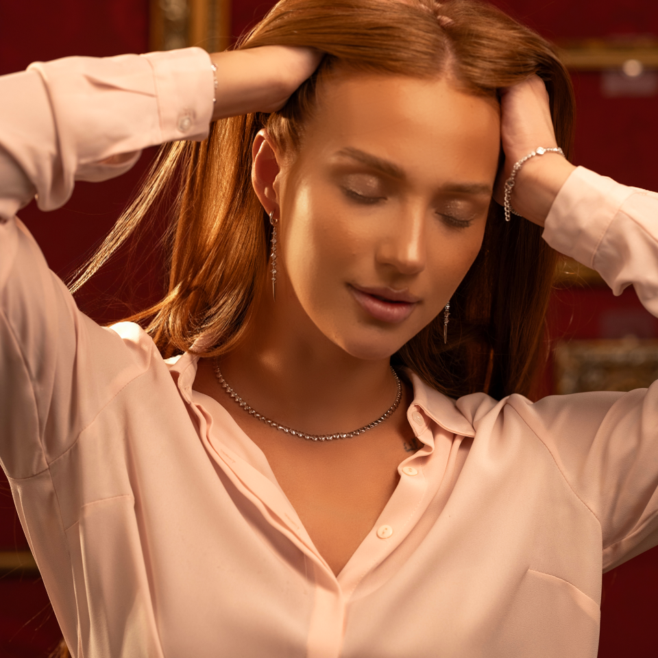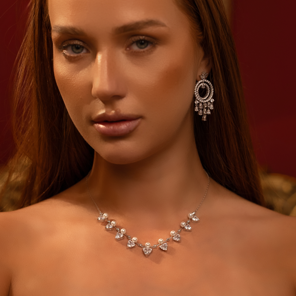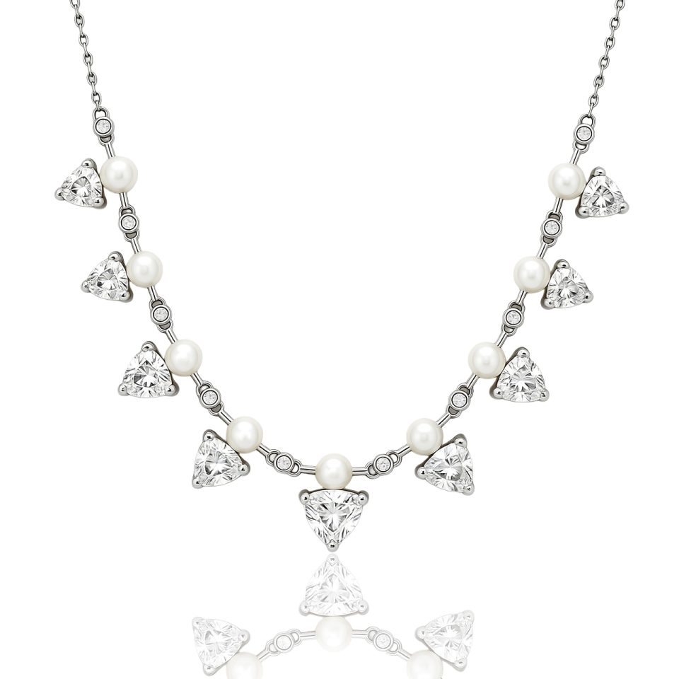 A necklace made of zircon stones and pearls speaks of luxury and unique beauty Silver 925