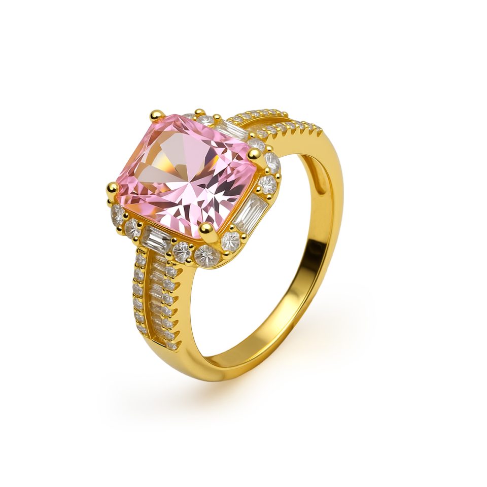 Rose quartz ring with zircon stones in gold plating Silver 925