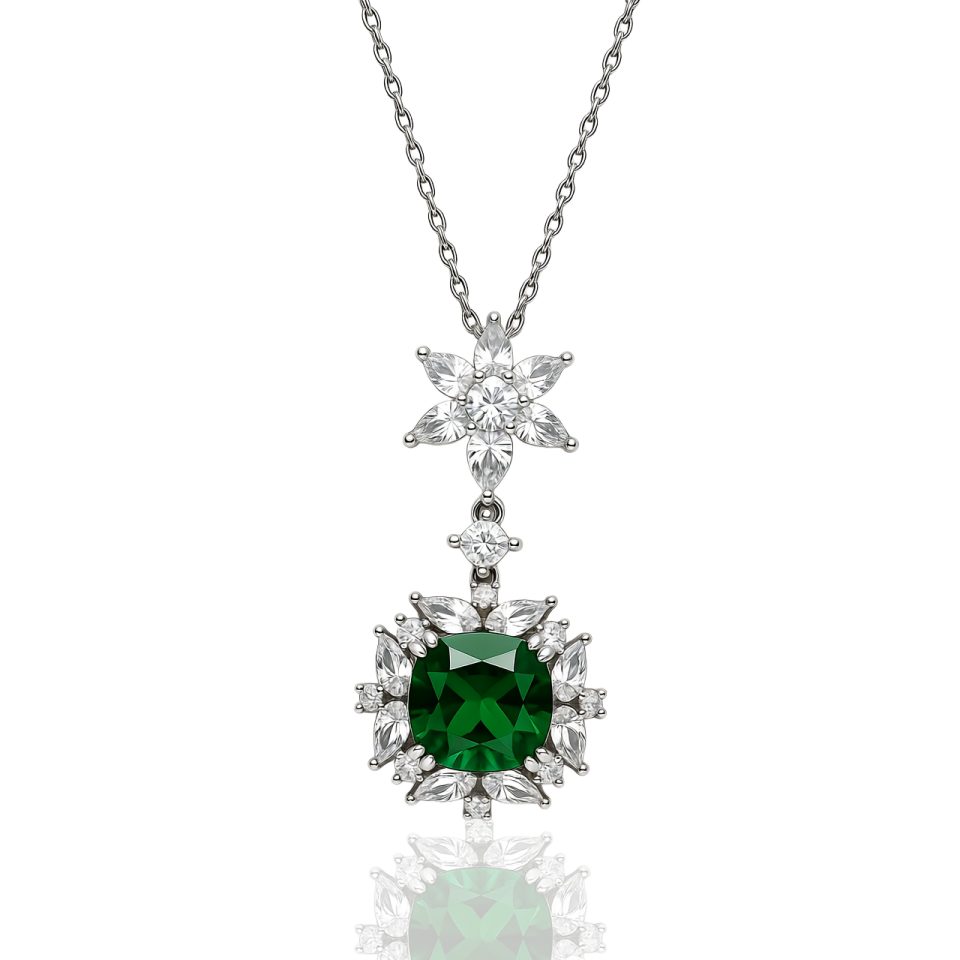 Royal Emerald Pendant Necklace in 925 Sterling Silver