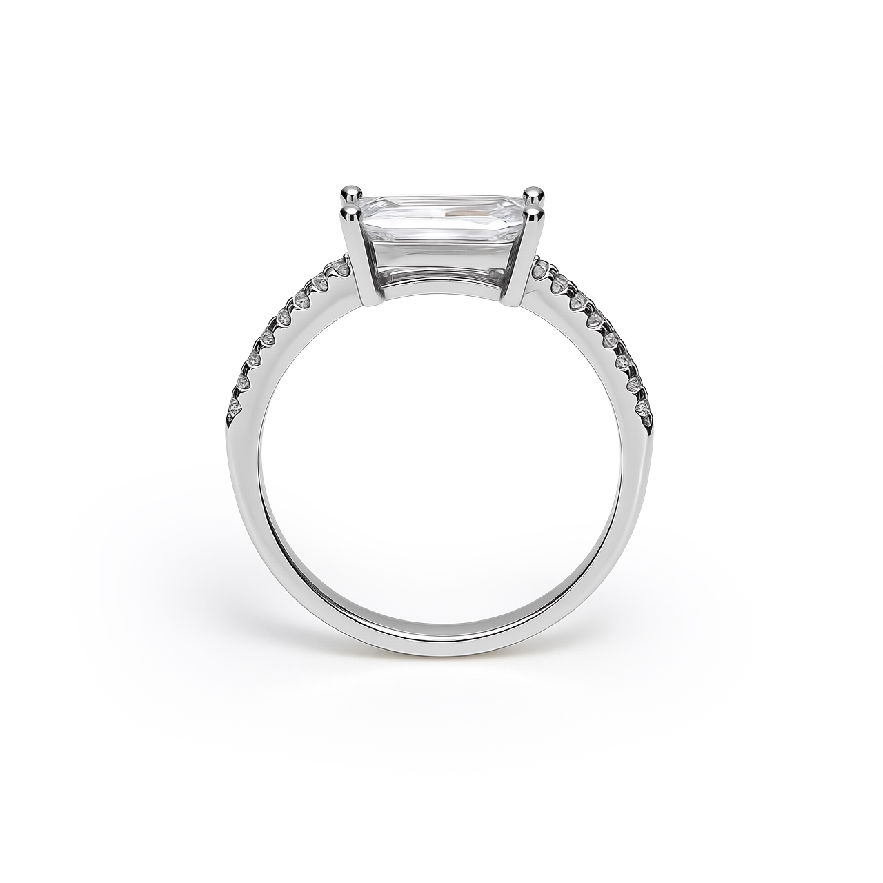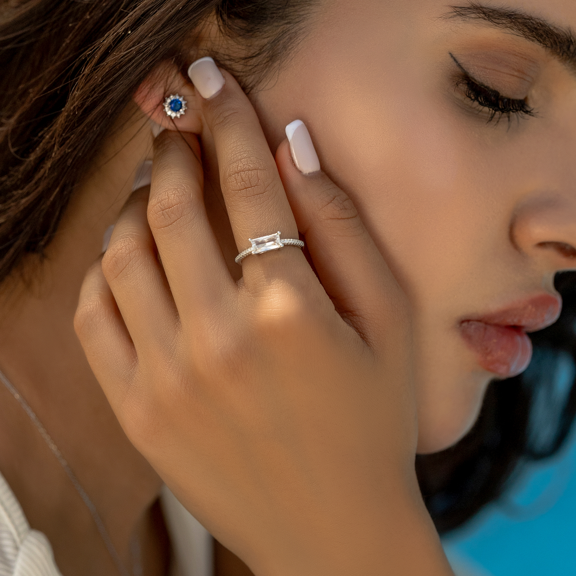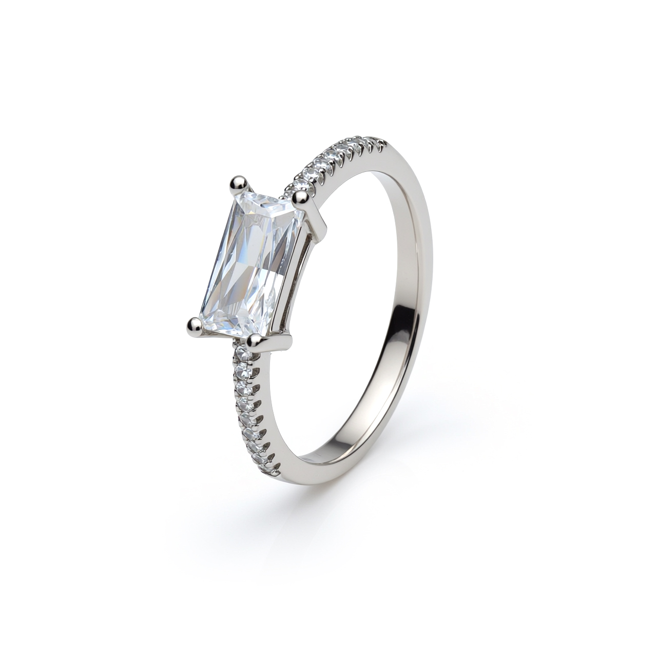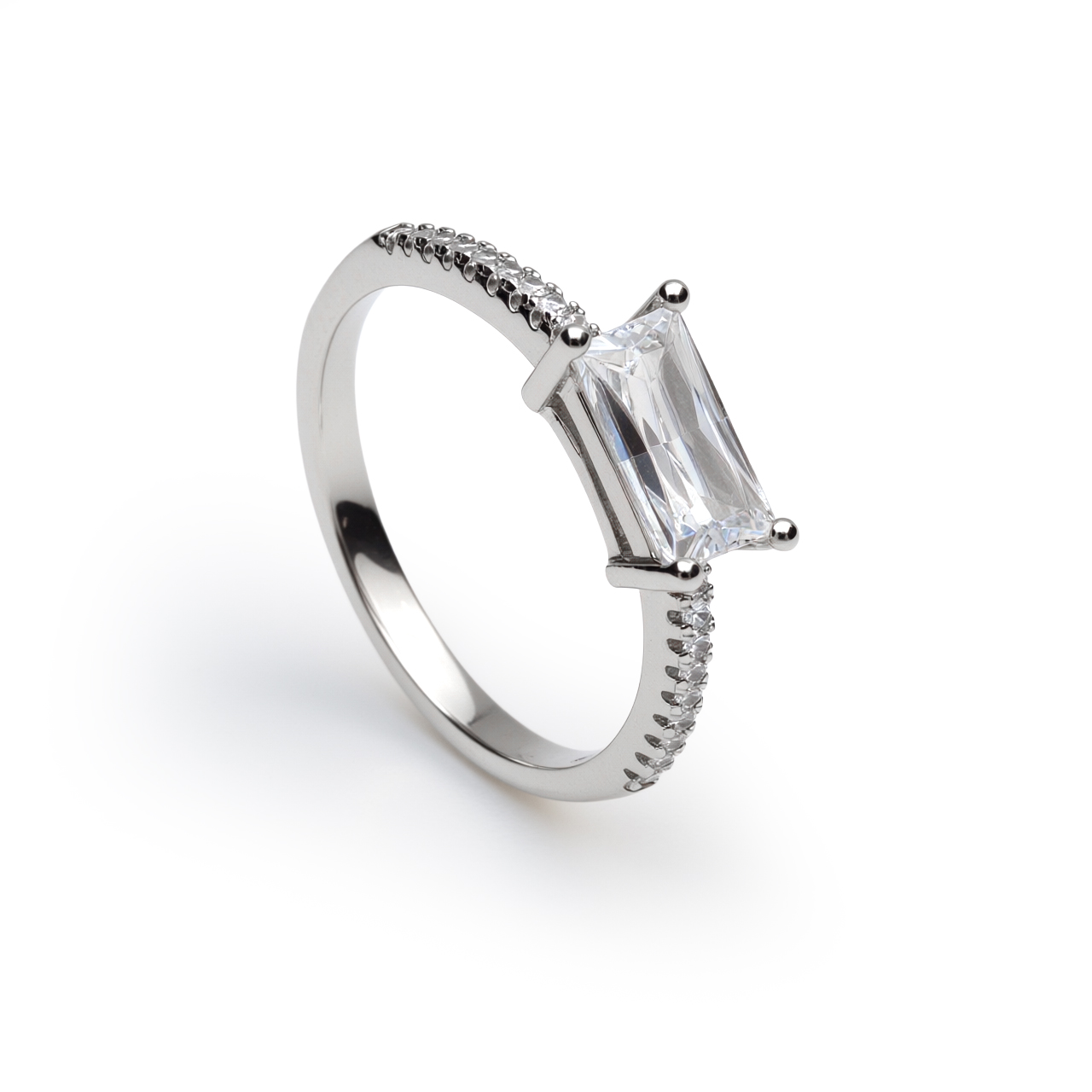 A ring with a baguette zircon stone, with a slim and distinctive design Silver 925
