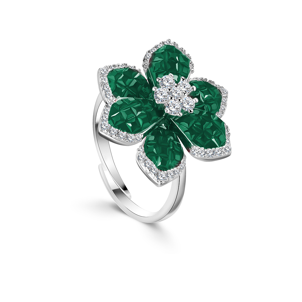 A rose with emerald lobes and zircon SIilver 925