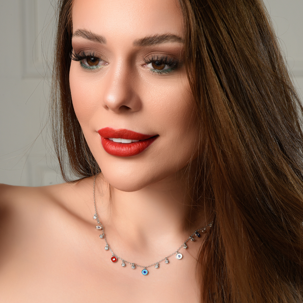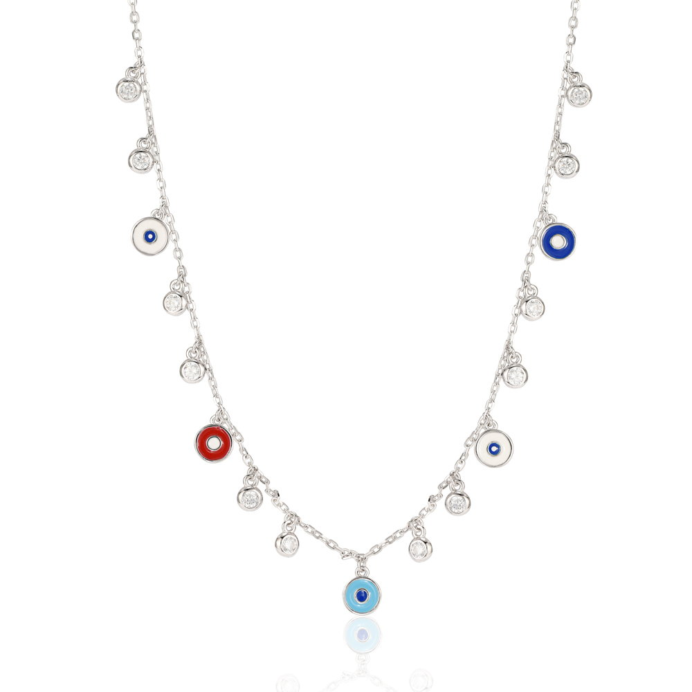 Collar with colorful eye design and zircon lobes Silver 925