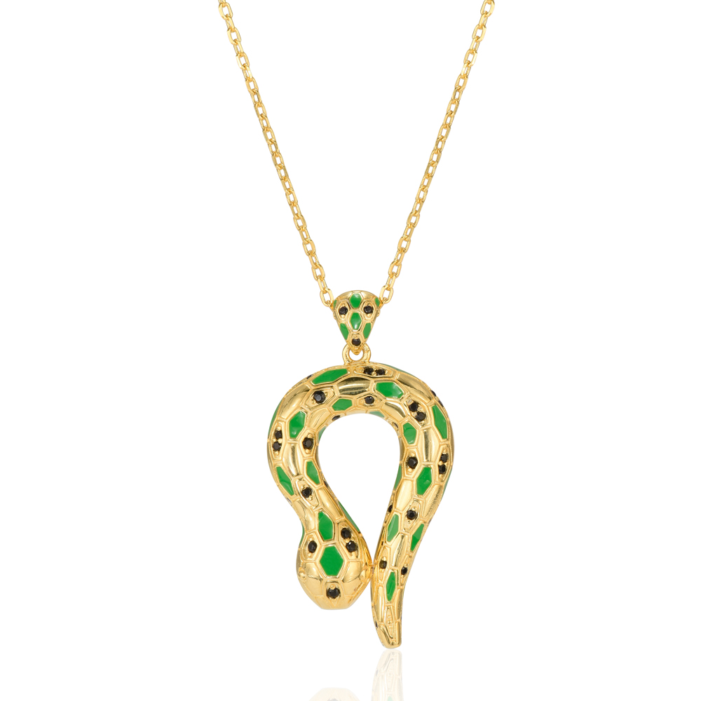 Gold-plated snake inlaid with black sapphire stones, silver 925