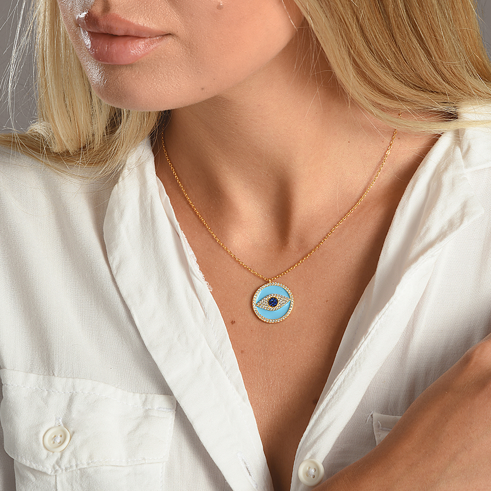 Be the first to review “Golden eye with zircon and blue sapphire stones silver 925”