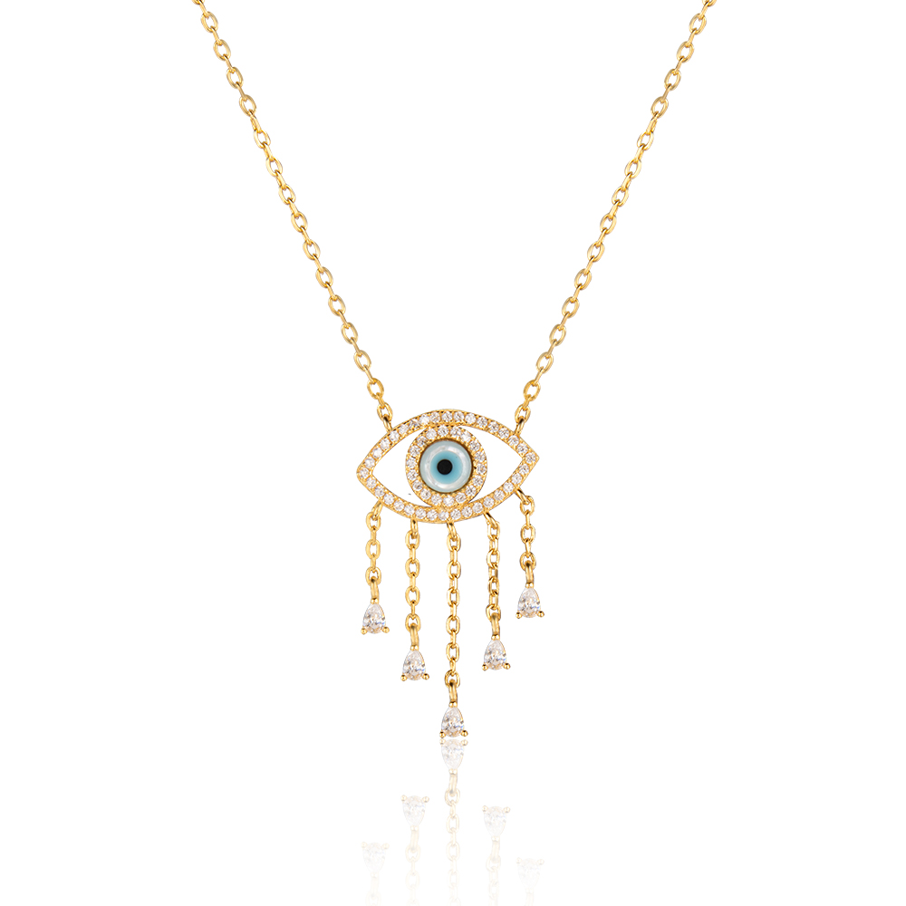 Golden seashell eye with zircon stones silver 925