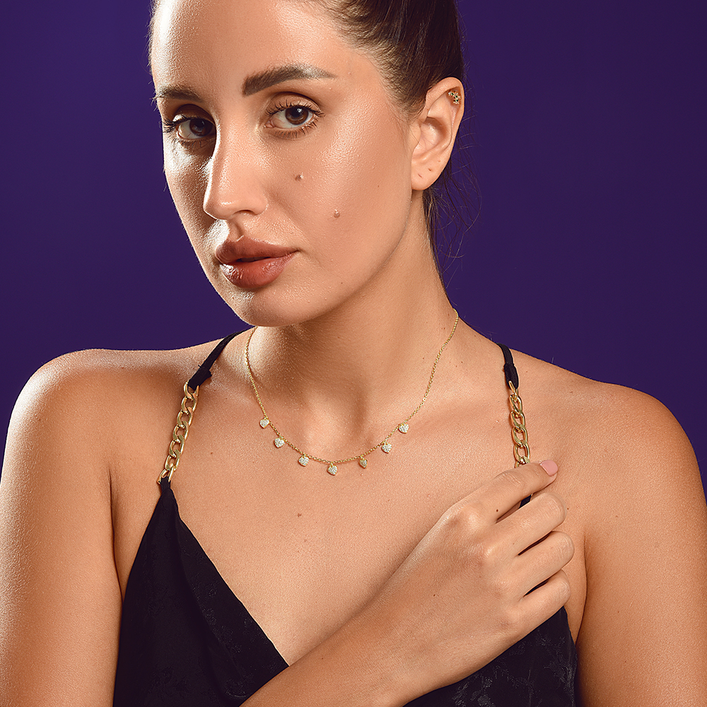 Gorgeous gold plated zircon hearts silver 925