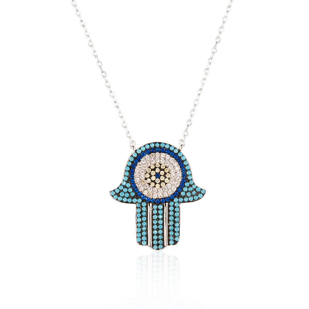 Hand with distinctive blue sapphire and turquoise stones silver 925