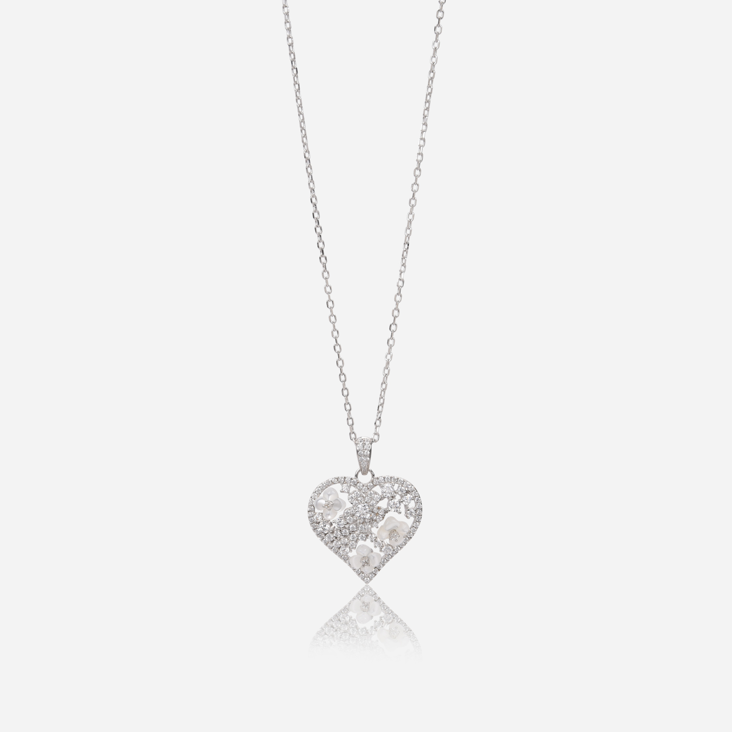 Heart with zircon lobes and natural seashell roses Silver 925