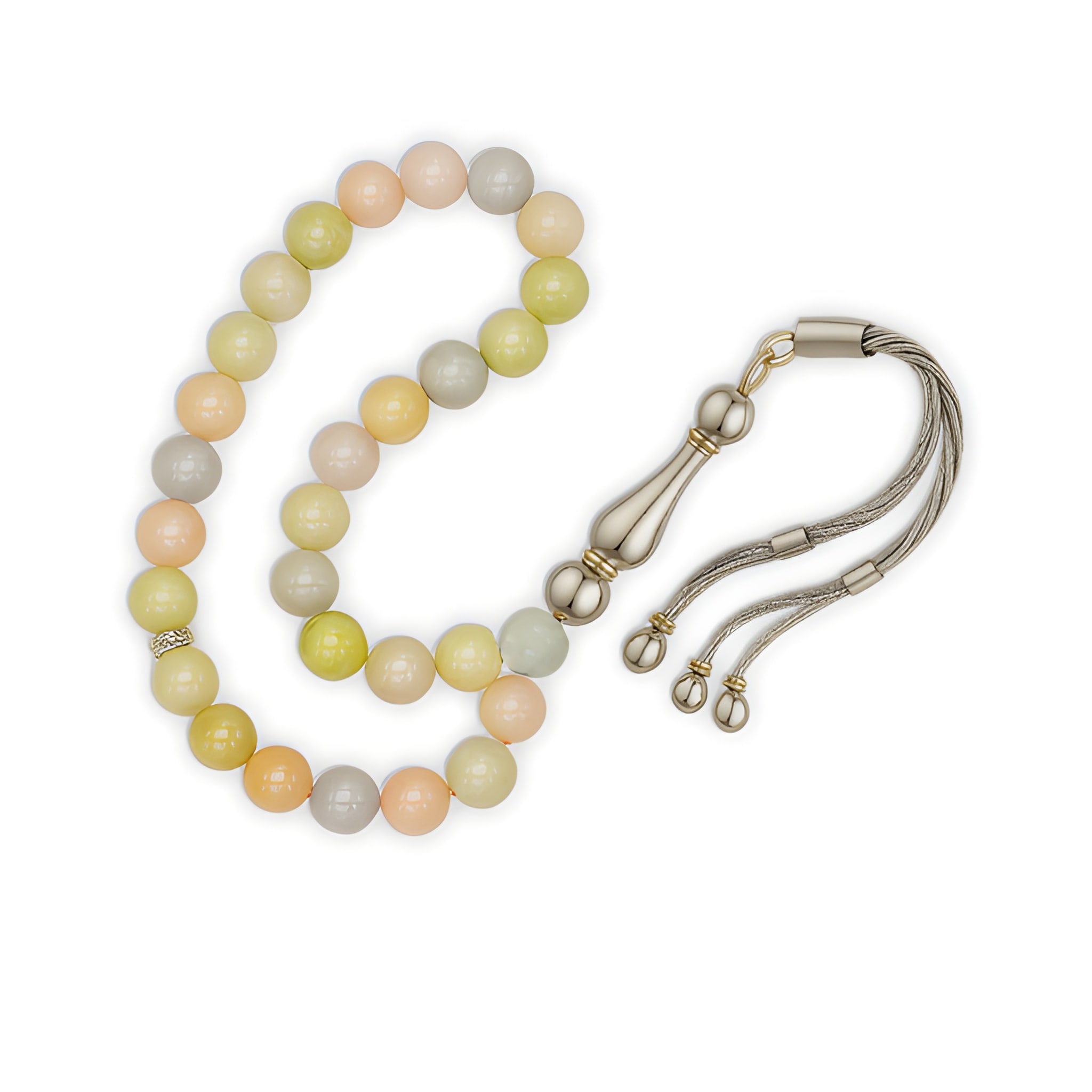 Delicate tasbih made from natural multicolor fluorite stones, blending pastel tones with silver accents for elegance Silver 925