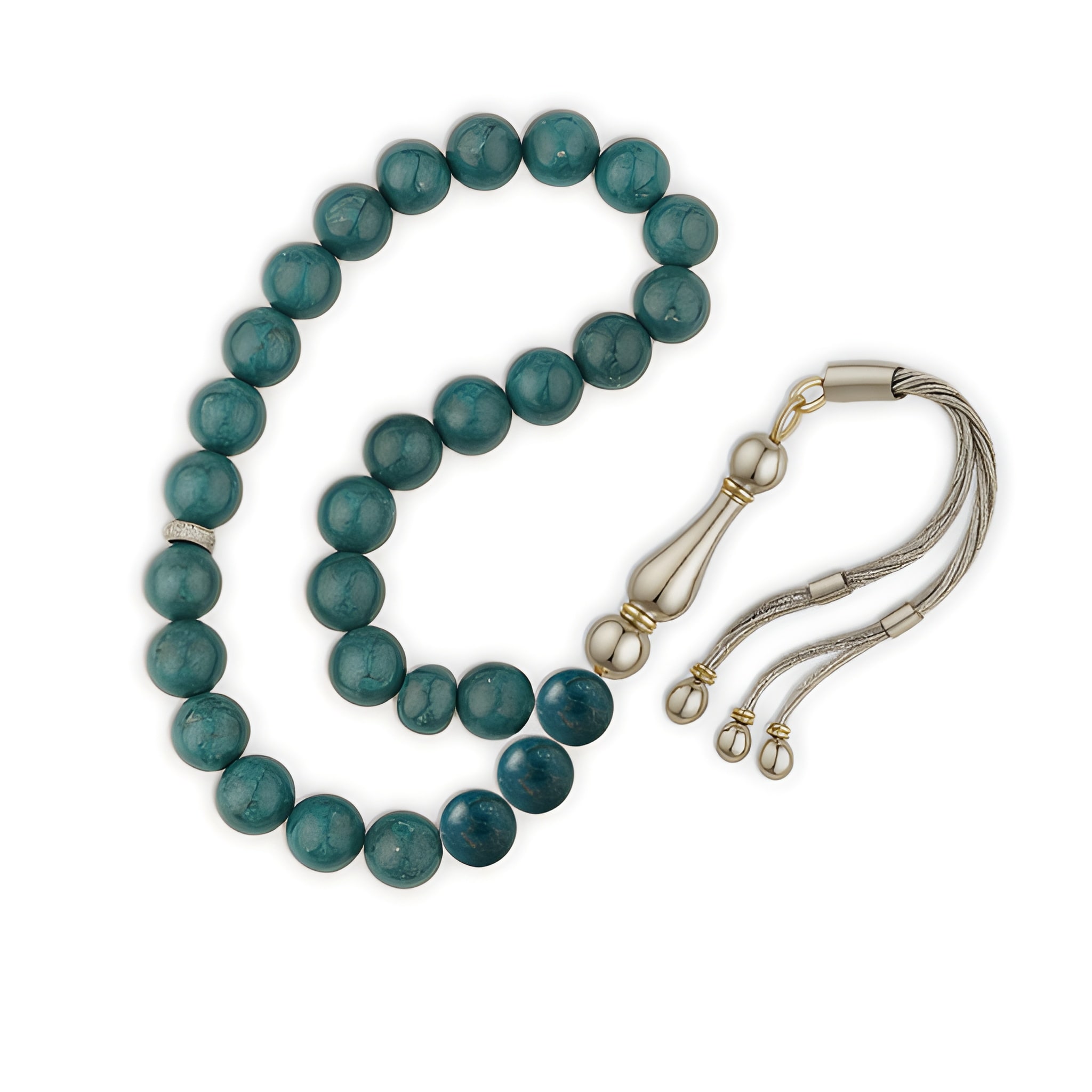 Handcrafted tasbih made from genuine blue agate stones, featuring elegant silver detailing and a smooth polished finish Silver 925