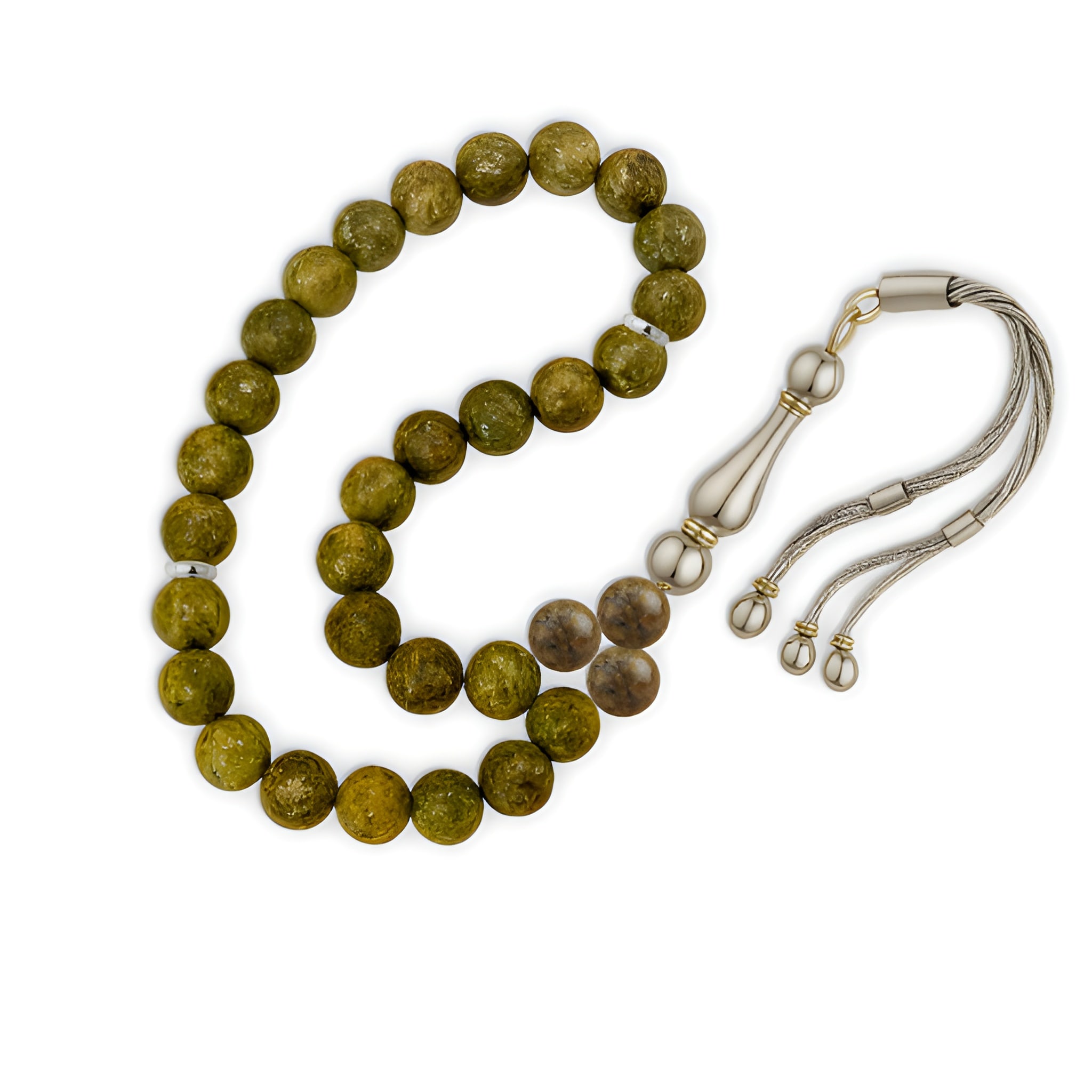 Handcrafted tasbih made from natural picture jasper stones, showcasing earthy tones and elegant silver detailing Silver 925