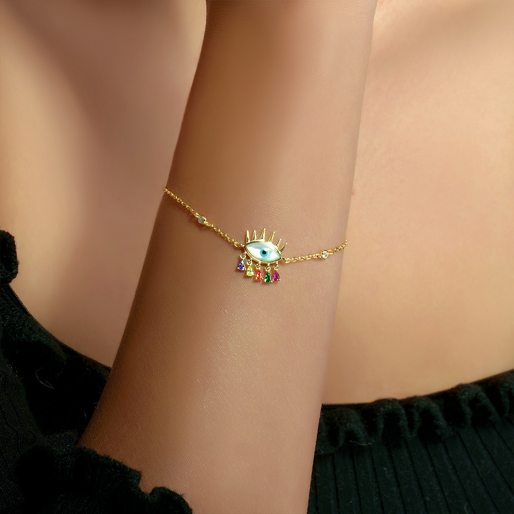 Natural scalloped eye with gorgeous colored lobes in gold plating silver 925