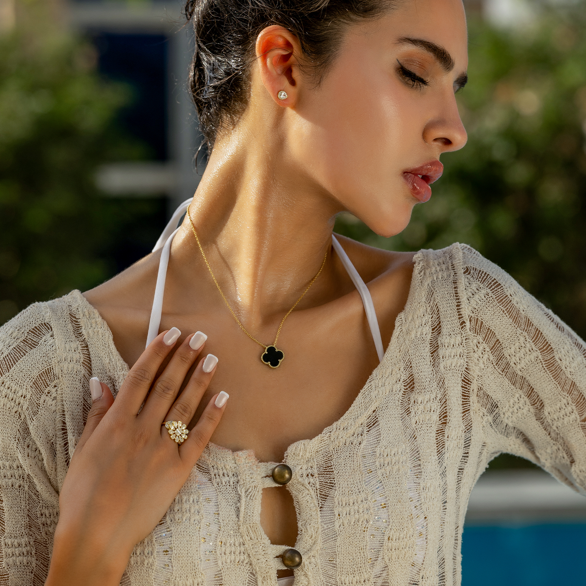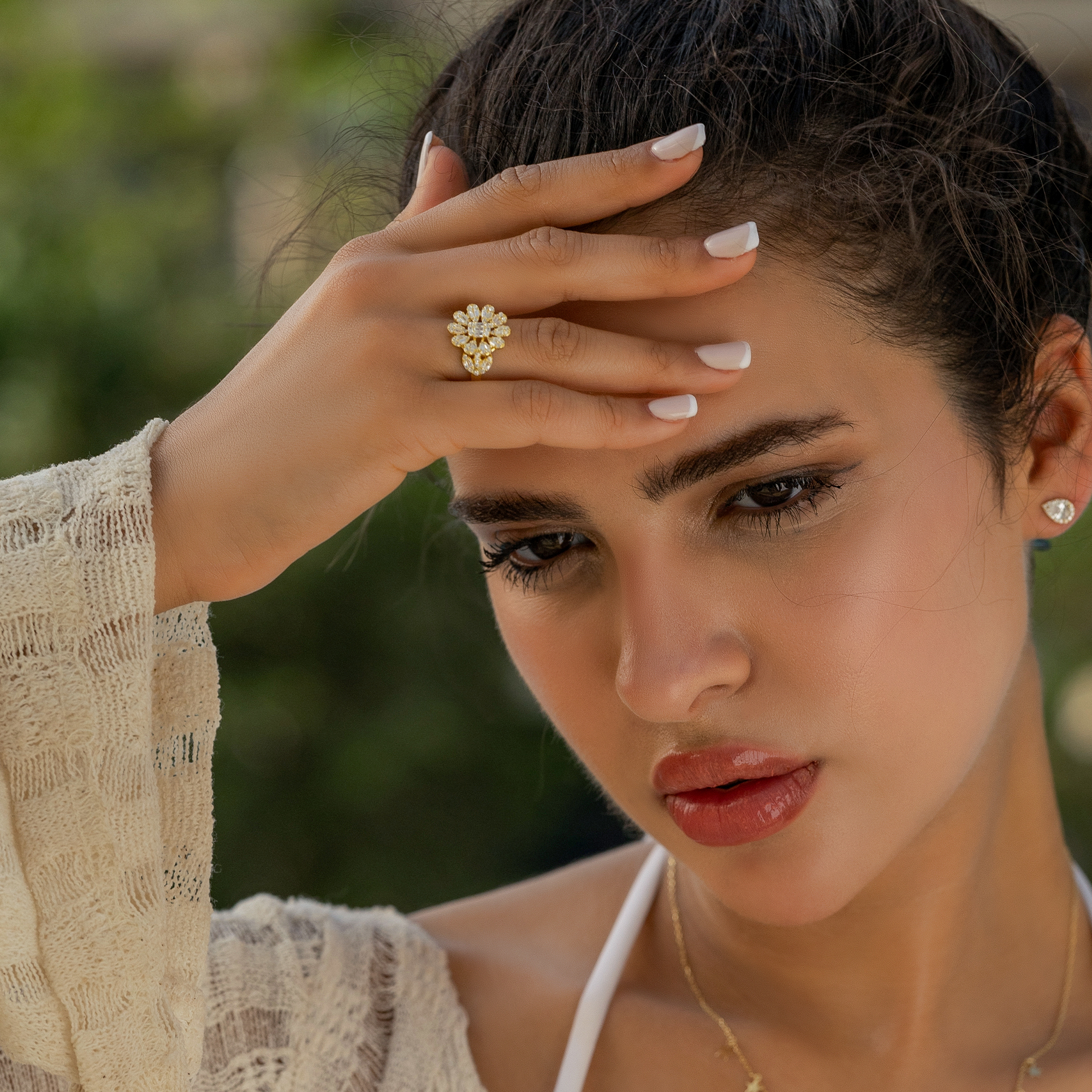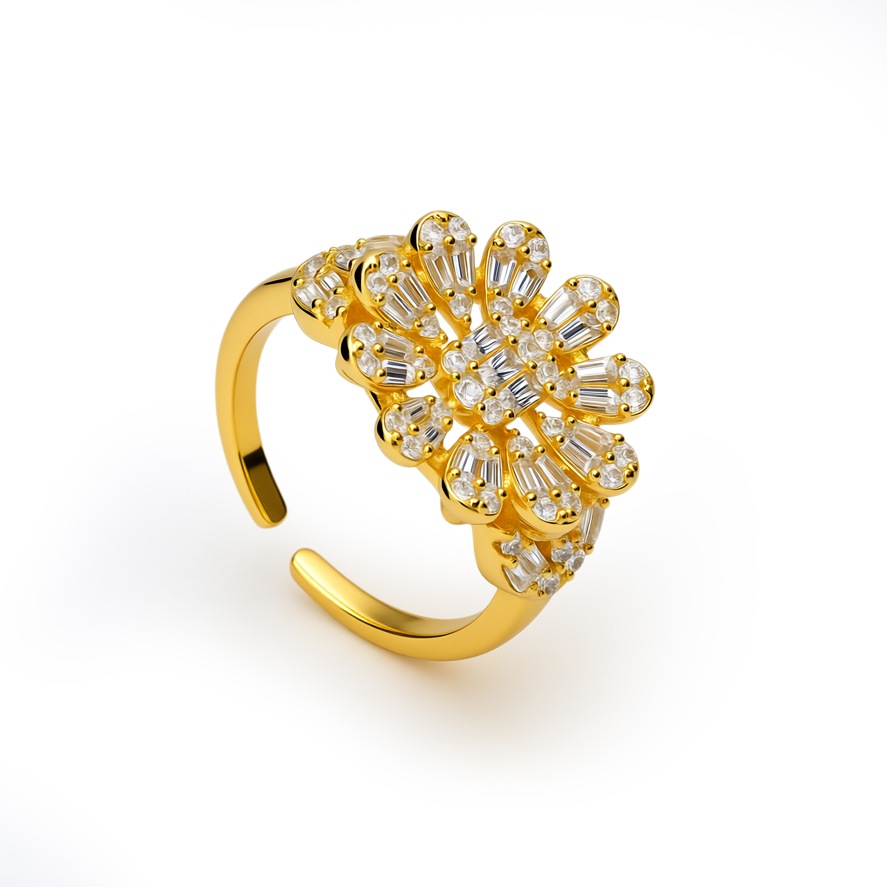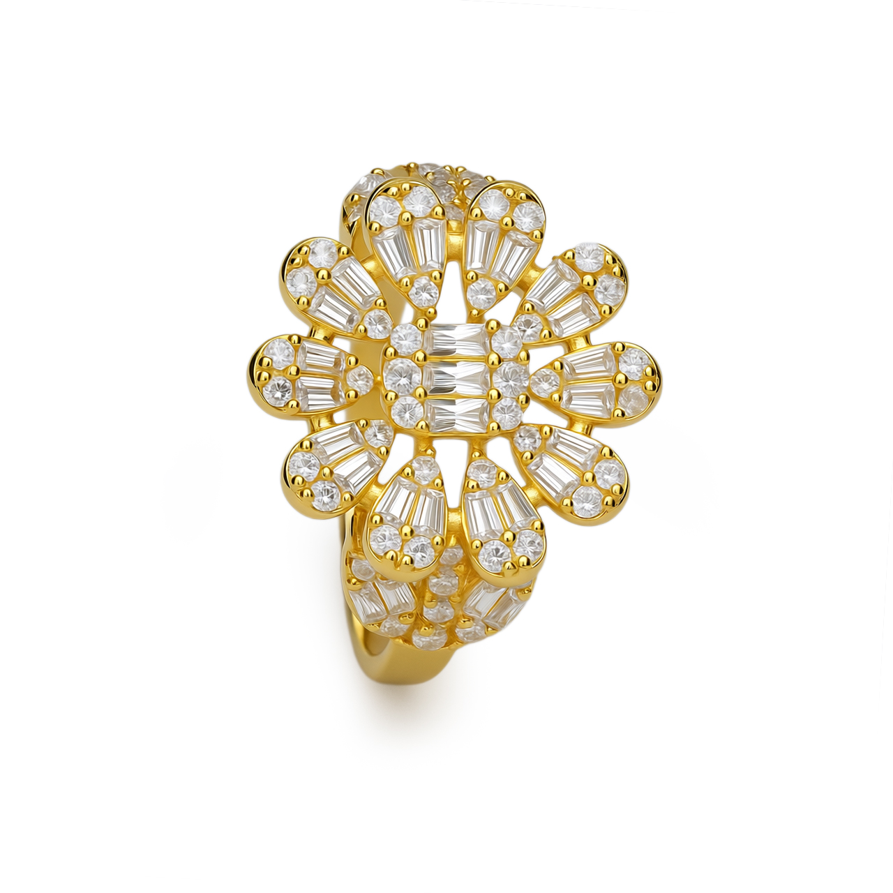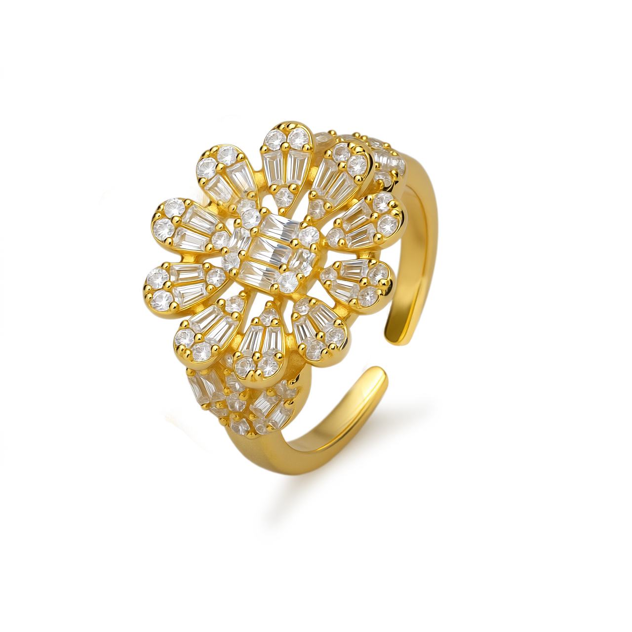 Rose-shaped ring with shiny zircon stones and gold plating Silver 925