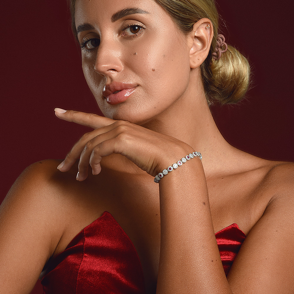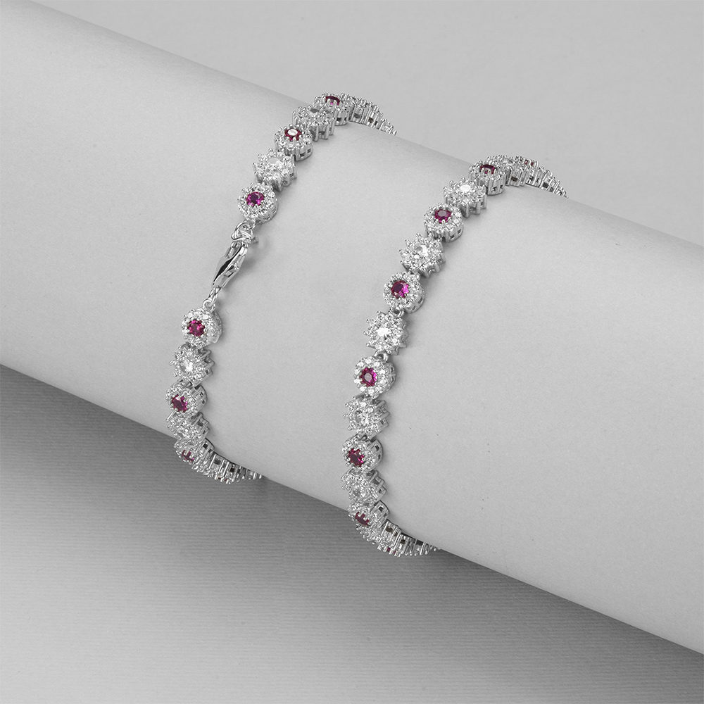Ruby lobes and zircon in a distinctive flower-shaped design silver 925