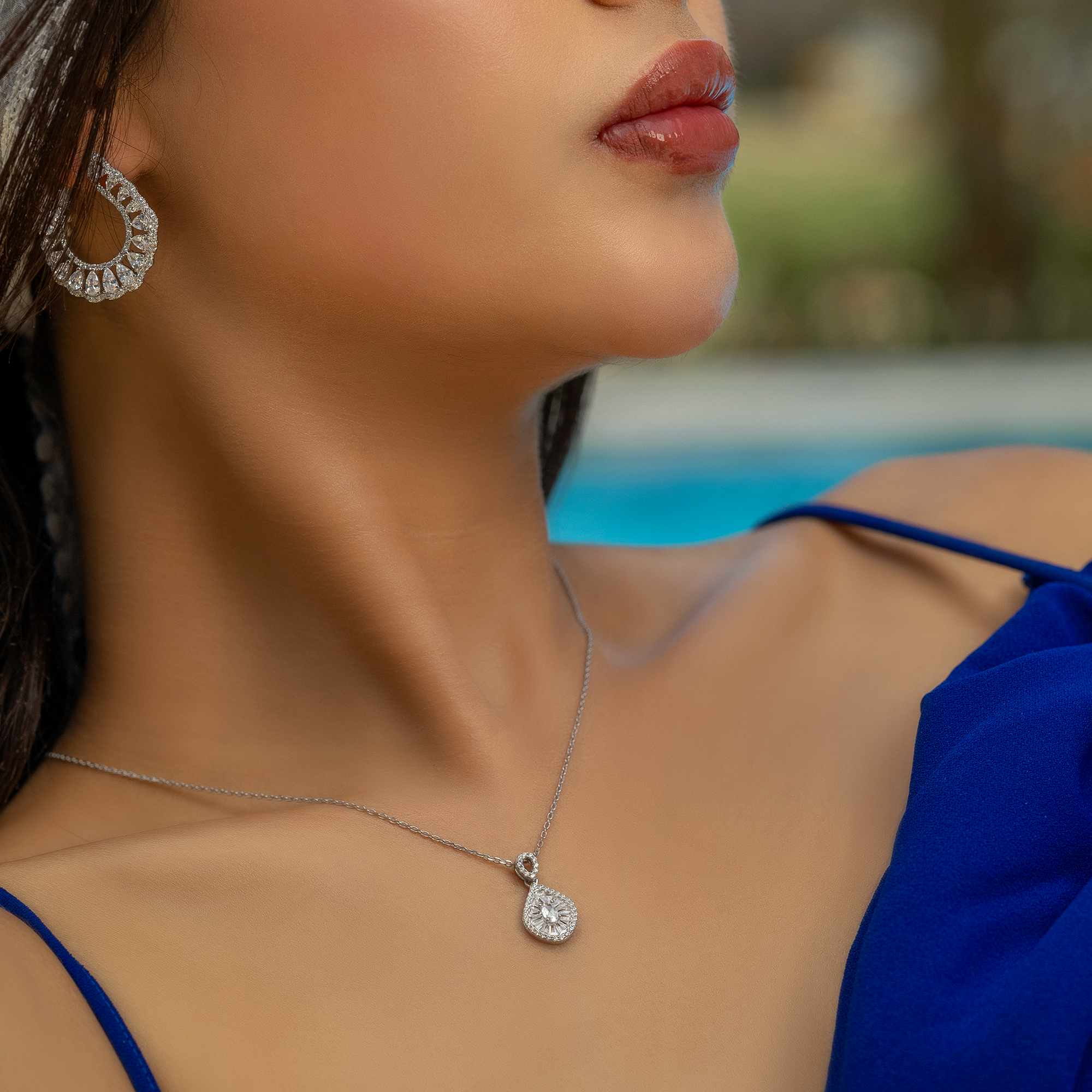 Be the first to review “Teardrop-shaped necklace with sparkling baguette-cut zircon stones Silver 925”